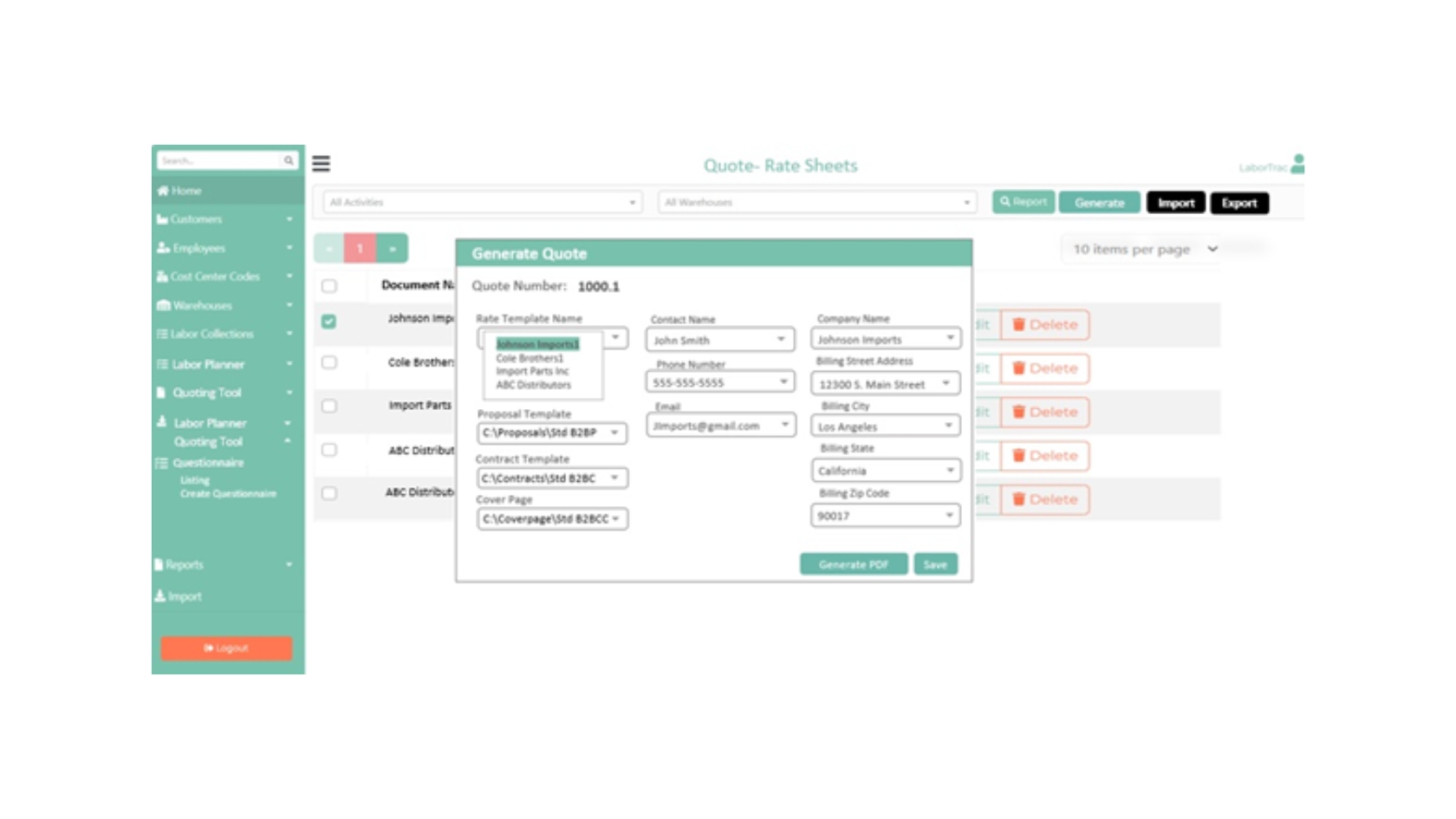 - Generate pricing rate sheets based on questionnaire responses